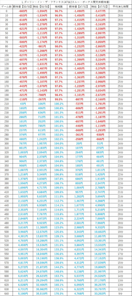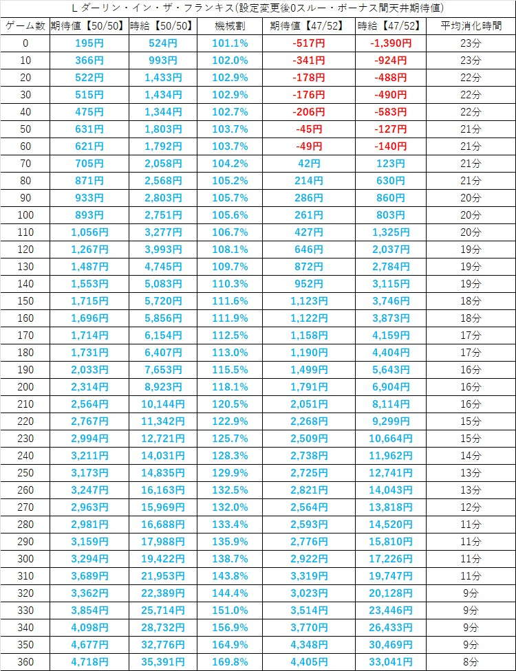 ※当該ボーナスでボーナス高確をスルーした時に再度スルー狙いができるため非等価も0~にしています。